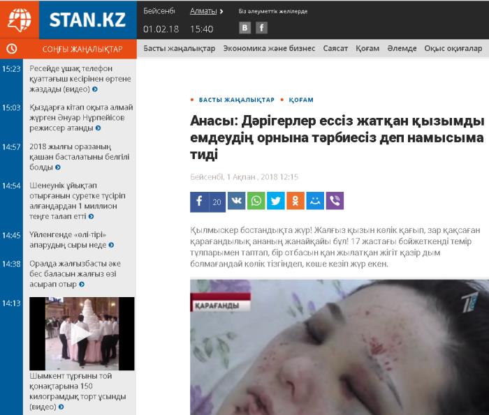 «Бар шығыңдар, үйтіңдер, бүйтіңдер, сүйтіңдер, сіздің балаңыз әбден тәрбие көрмеген екен, операция кезінде бізді боқтап, дымымызды қалдырған жоқ», дейді. Бұл бала сана-сезімі орнына келген жоқ, ол есін білмейді. Тіпті мені де танып тұрған жоқ, 4 күн өтсе де» – зардап шегушінің анасы Гүлсара Ержанова.
