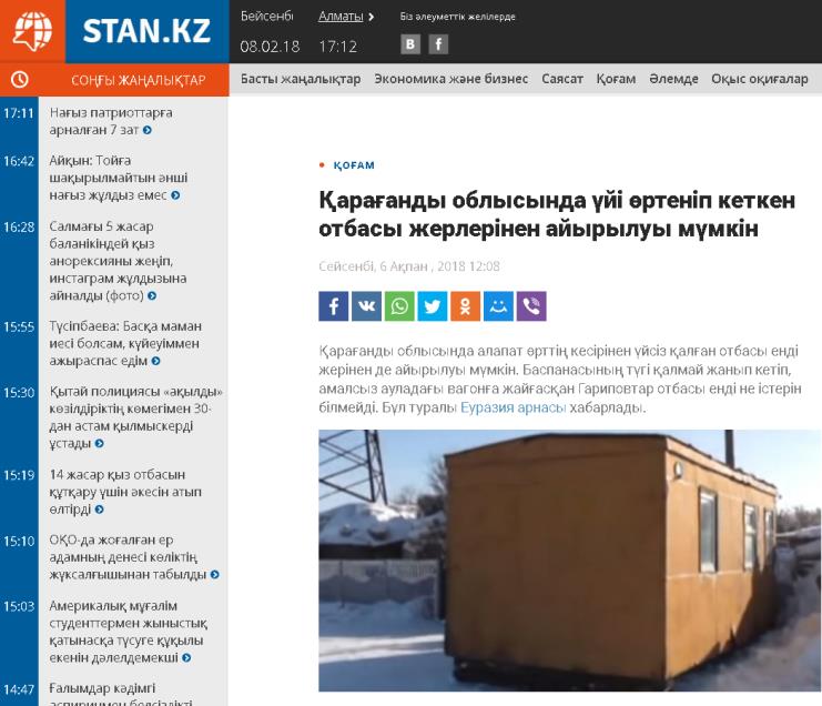 Қарағанды облысында алапат өрттің кесірінен үйсіз қалған отбасы енді жерінен де айырылуы мүмкін. Баспанасының түгі қалмай жанып кетіп, амалсыз ауладағы вагонға жайғасқан Гариповтар отбасы енді не істерін білмейді. Бұл туралы Еуразия арнасы хабарлады.