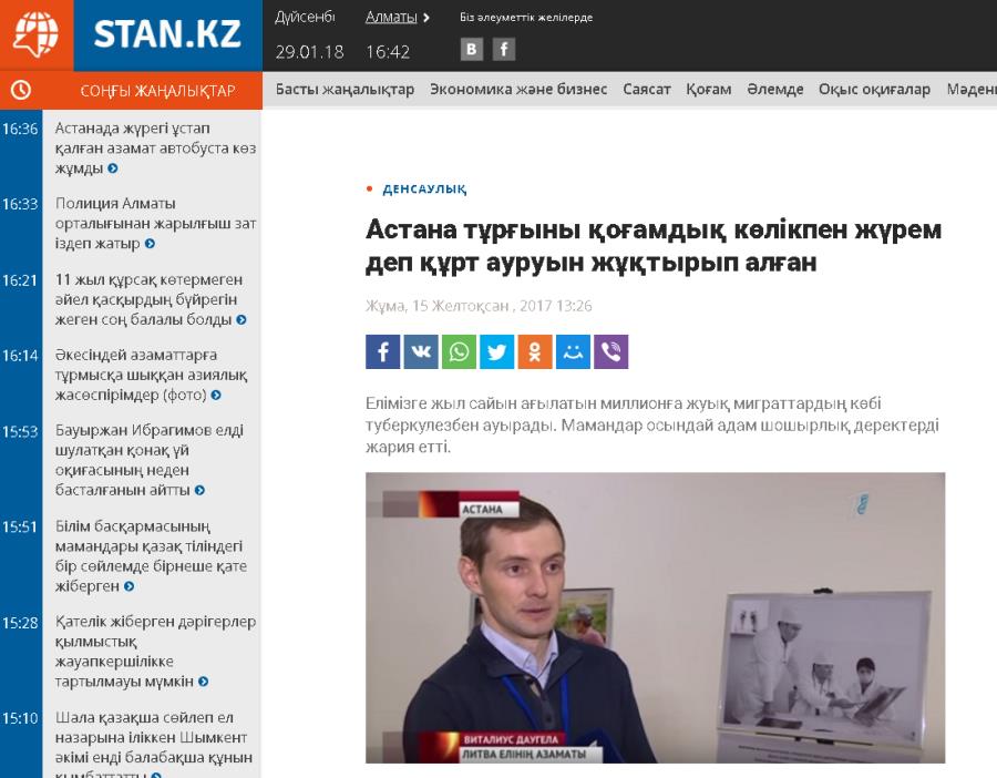 «Мен қоғамдық көлікпен жиі қатынайтынмын. Мүмкін сол жерде жұқтырып алдым деп ойлаймын. Онымен қоса, үй-күйі жоқ адамдарға көмектесетінім тағы бар. Туберкулездің адам кез-келген жерде жұқтырып алады емес пе?» – Литва елінің азаматы Виталиус Даугела.