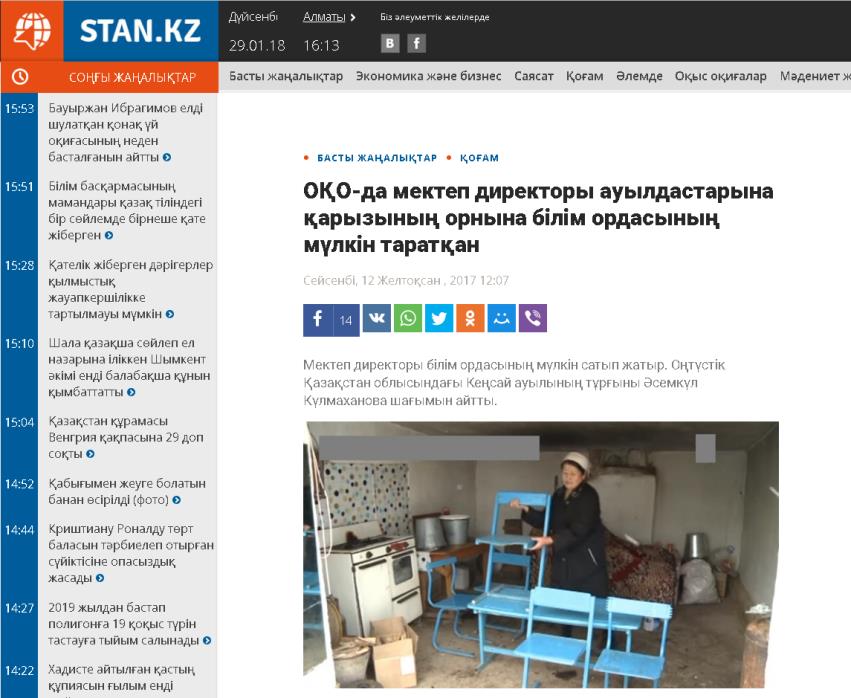 Әсемкүл Күлмаханованың айтуынша, арызды жазу себебі – «Кеңсай» орта мектебінің директоры Бауыржан Адилаевтың мемлекет мүлкін сатып, залал келтіргені жайлы нақты деректі көрсеткісі келген. Атап айтқанда, 2016 жылы ол ауыл тұрғынынан қомақты қаржы алып, оның орнына 2 парта мен 6 орындықты берген көрінеді. Мәселенің мән-жайны білмек болып, мектеп директорына телефон арқылы хабарласқанымызда, ол мынадай уәж айтты.