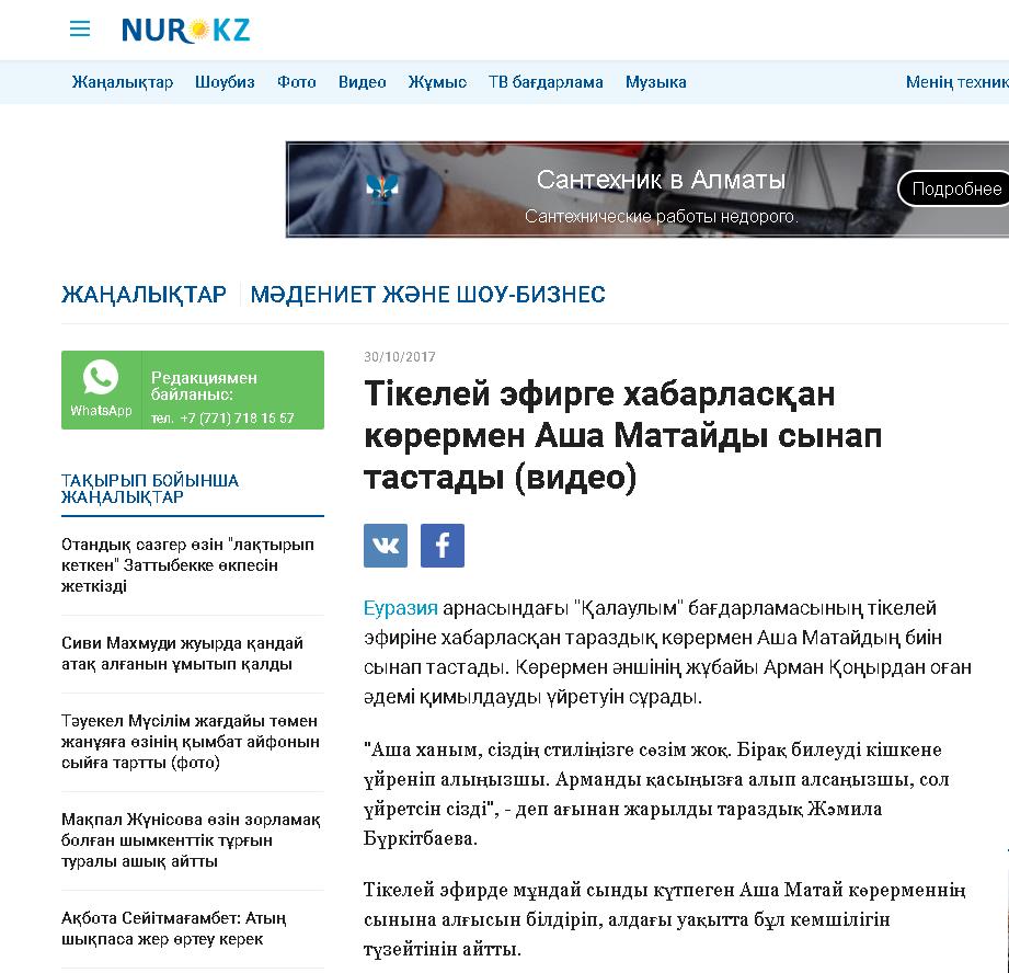 Тікелей эфирде мұндай сынды күтпеген Аша Матай көрерменнің сынына алғысын білдіріп, алдағы уақытта бұл кемшілігін түзейтінін айтты.